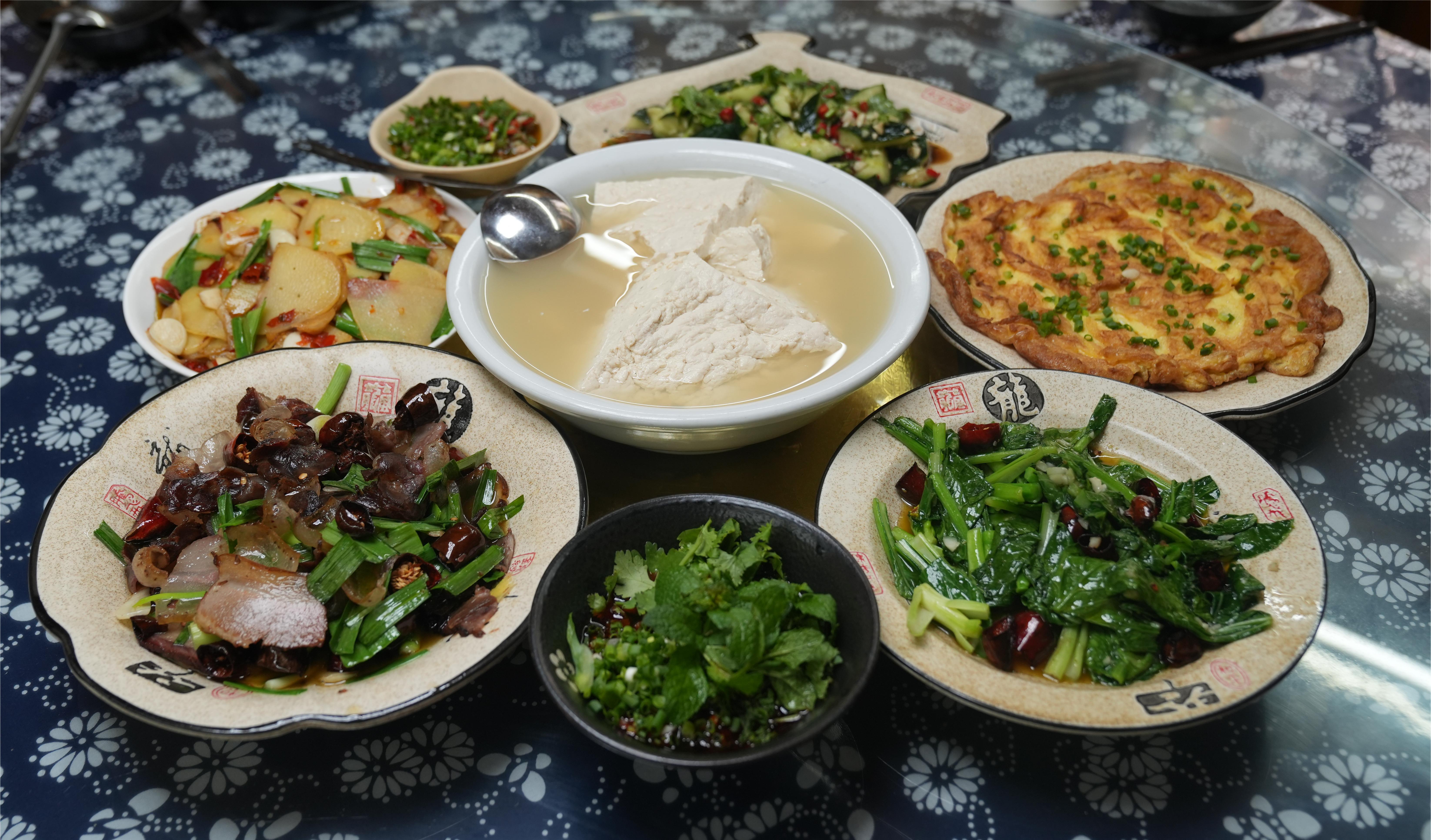 夹一筷子豆花,再一筷子蘸料,裹上米饭塞入口中,一清二白三鲜嫩,四红五绿六麻辣。一筷豆花、一筷腊肉、一筷青菜,无论你走多远,都走不出那碗氤氲着浓浓豆香的家乡味道……