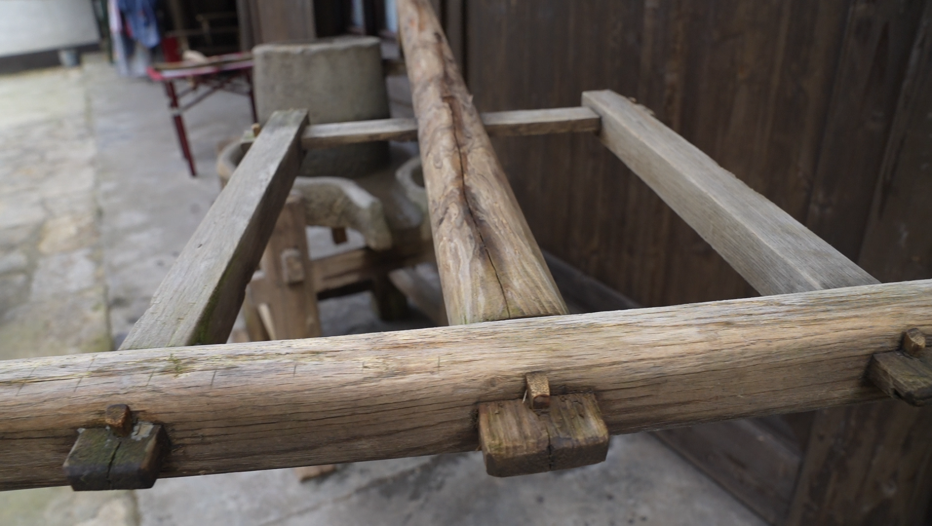 湾子苗寨老屋屋檐下的石磨已准备就绪,磨担钩套上缰绳,舀几粒黄豆和少许水倒入磨孔中,几圈下来,乳白色的豆浆顺着石磨缝隙缓缓流进底部容器。将一推一拉间磨出的豆浆倒入大锅,生火、添柴,烧至沸腾,纱布滤出豆渣,收拢挤压,更加香醇的豆浆被再次烧开后便到了最关键的环节——点豆花。