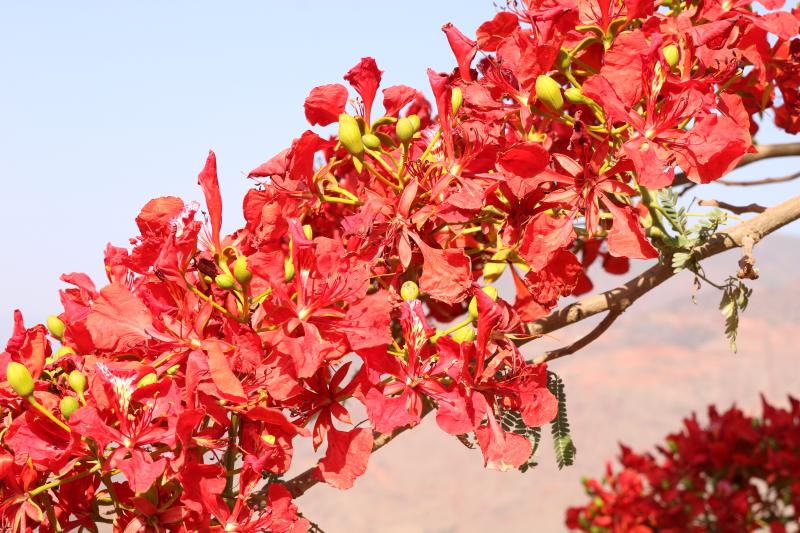 凤凰花:礼社江畔的初夏是被凤凰花唤醒的。花开时,灿若云霞,总在不经意间惊艳着人们的眼眸。风吹花瓣摇曳枝头,盛夏时节开得尤其热闹,鲜红的花朵仿佛在与烈日骄阳比试,灼灼其华、灿烂又热烈,漫步其间,骄阳也退缩了几分。