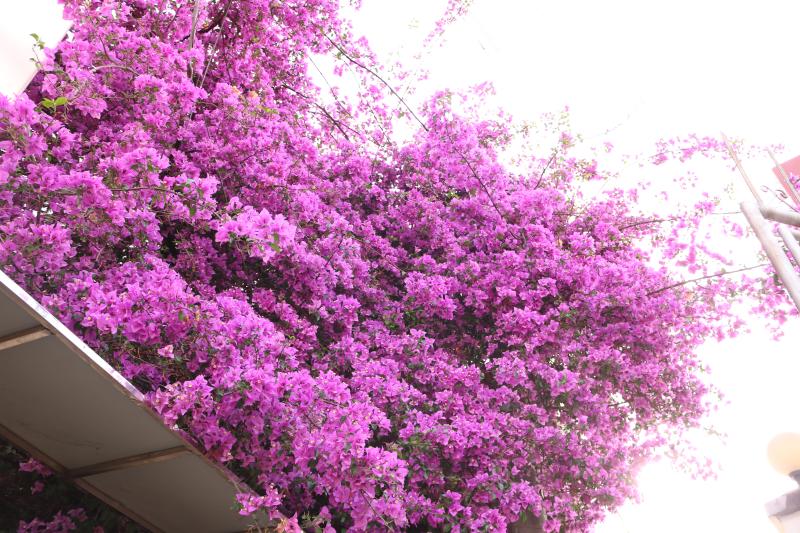 三角梅:最食人间烟火,无论春夏秋冬,都是她的花期,不管是僻静幽暗的角落,或是无人问津的地方,只要一撮泥土,一丝温度、一缕阳光便能让她喷红叠紫。大红、玫红、粉红……各色的瓣叶包裹着黄色花蕊,只是路过惊鸿一瞥,胜却繁华人间无数。