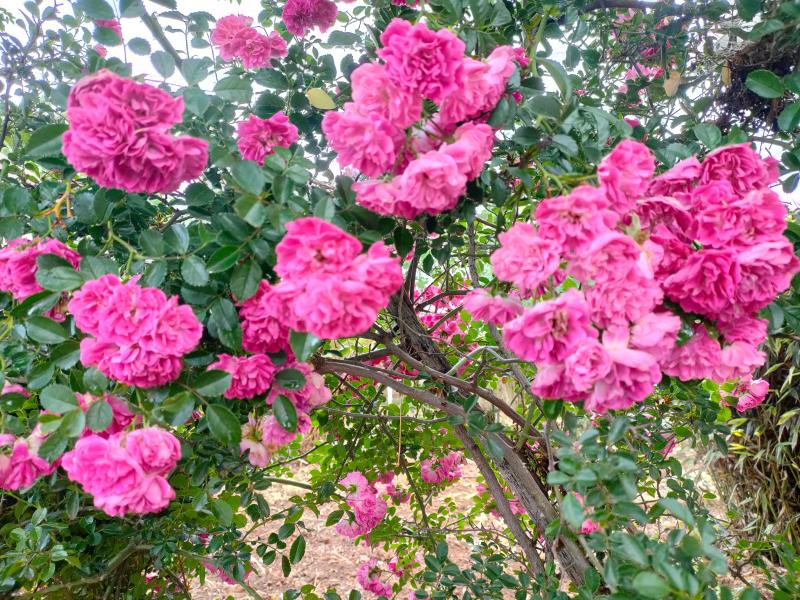 蔷薇:花开繁密、花型娇小是她留给人们的第一印象。碧绿的藤条上长满小刺,却丝毫不影响那些粉色的花朵竞相绽放,花色或深或浅,花朵或蓓蕾初现、或浓情盛开。初看不显眼,再观已沉醉,给人花开花落自有时,人来人往任由之的惬意之感。